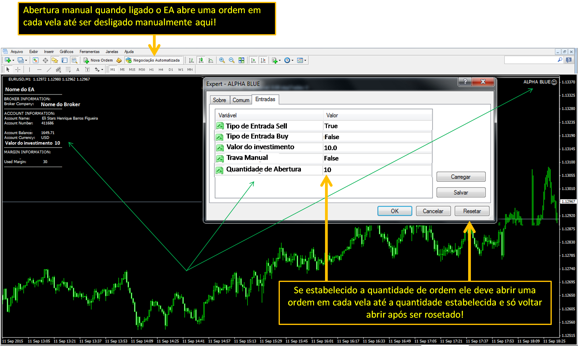1 - ELE DEVE ABRIR ORDEM VELA A VELA NO TIME FRAME EM QUE TIVER.