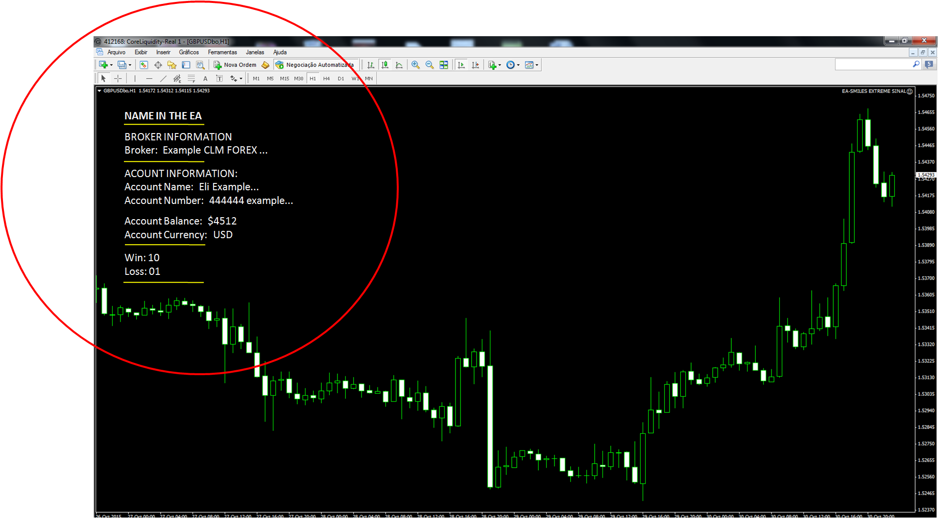 Tenho código de um EA de opções binarias, quero inserir um painel que mostre informações do broker, pessoais e vitorias e perdas das aberturas do EA.