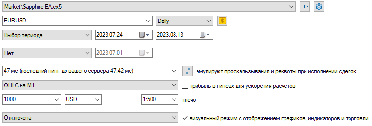 My last account that run sapphire, no more, 1rst can work with other eas in the same account, and depended of the market if in trending the EA stuck for days until clean the account. Abd is very niece but lack of reality, the market can do anything that want, hope that review help others.