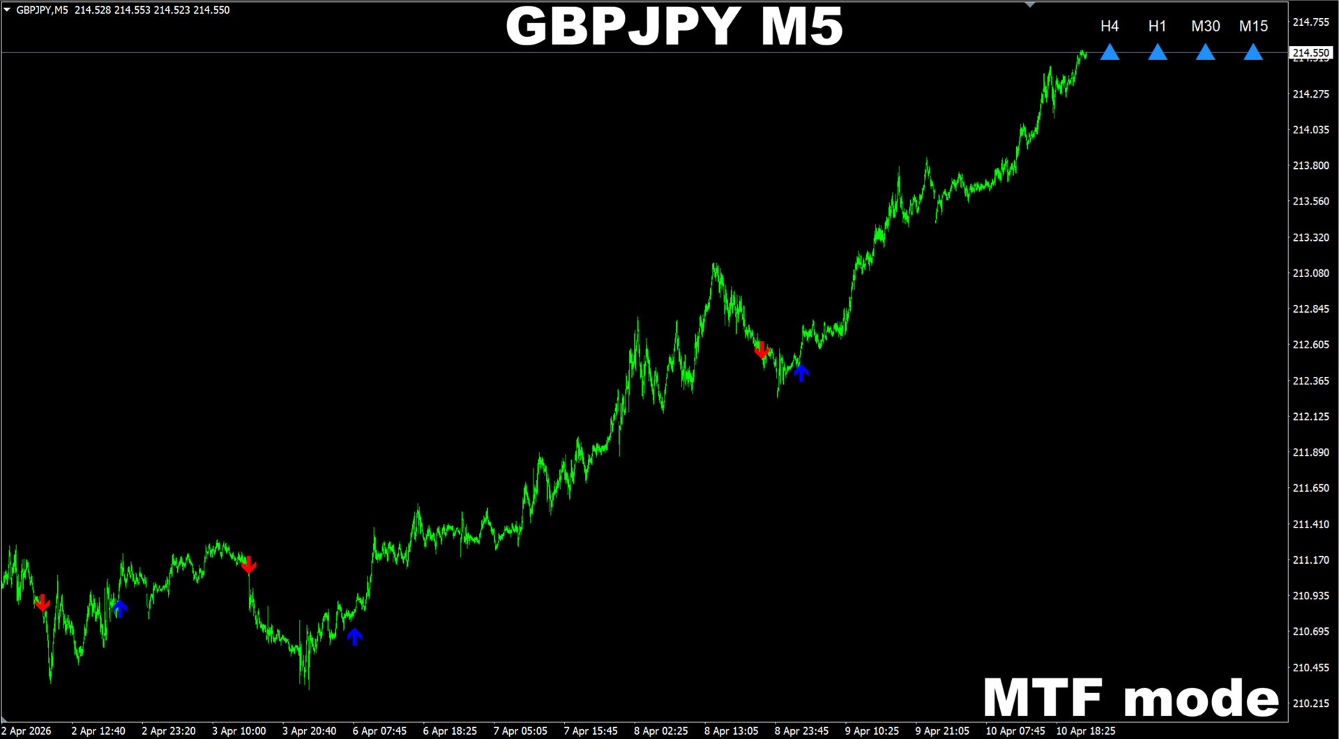 O indicador fornece todos os tipos de alertas, incluindo notificações PUSH.