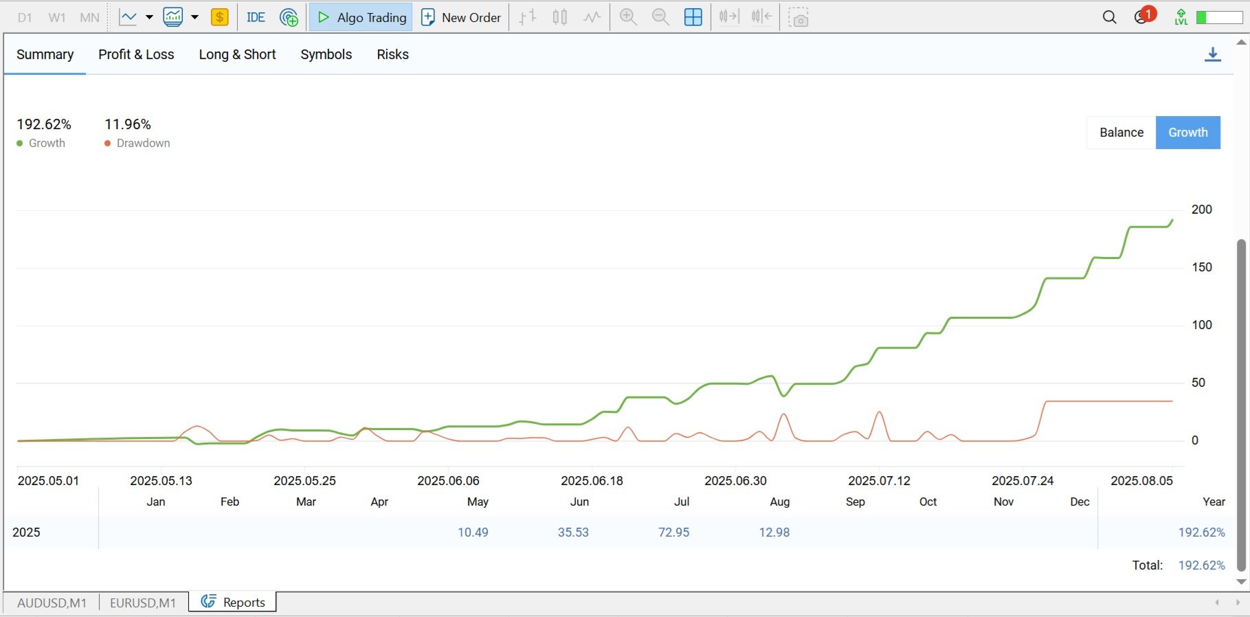 The live trading signals demonstrate impressive performance, particularly due to the EA's ability to operate effectively during the roll-over period, a time range where most expert advisors (EAs) have historically failed to remain profitable since a few years ago. This is especially noteworthy, as many EAs that once exploited inefficiencies during roll-over have stopped working, even on ECN accounts provided by reputable brokers. Roll-over EA's usually consistently performs well regardless of which reversal indicator or indicator value change is applied. This suggests a high probability that it would pass walk-forward optimization and Monte Carlo stress tests, and why the back-test results aren't over-optimized as reflected in the live signals. While there are numerous examples of roll-over-based EAs generating over 100,000% profit on demo accounts, they fail in live trading conditions due to broker-imposed restrictions. In contrast, this EA appears to overcome those limitations - you don't have to have zero spread for the EA to work. Additionally, the seller added a randomization feature to bypass prop firm account correlation so all in all good customer support.