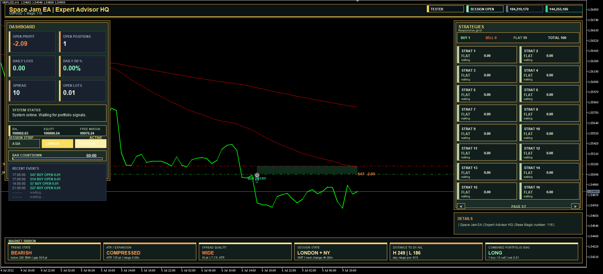 Space Jam EA is an automated trading system developed for GBPUSD on the H1 timeframe, built to deliver a structured and visually refined trading experience inside MetaTrader 5. The system is designed around disciplined market participation, combining organized trade logic with stable on-chart presentation for traders who want both automation and clear visibility into system activity.