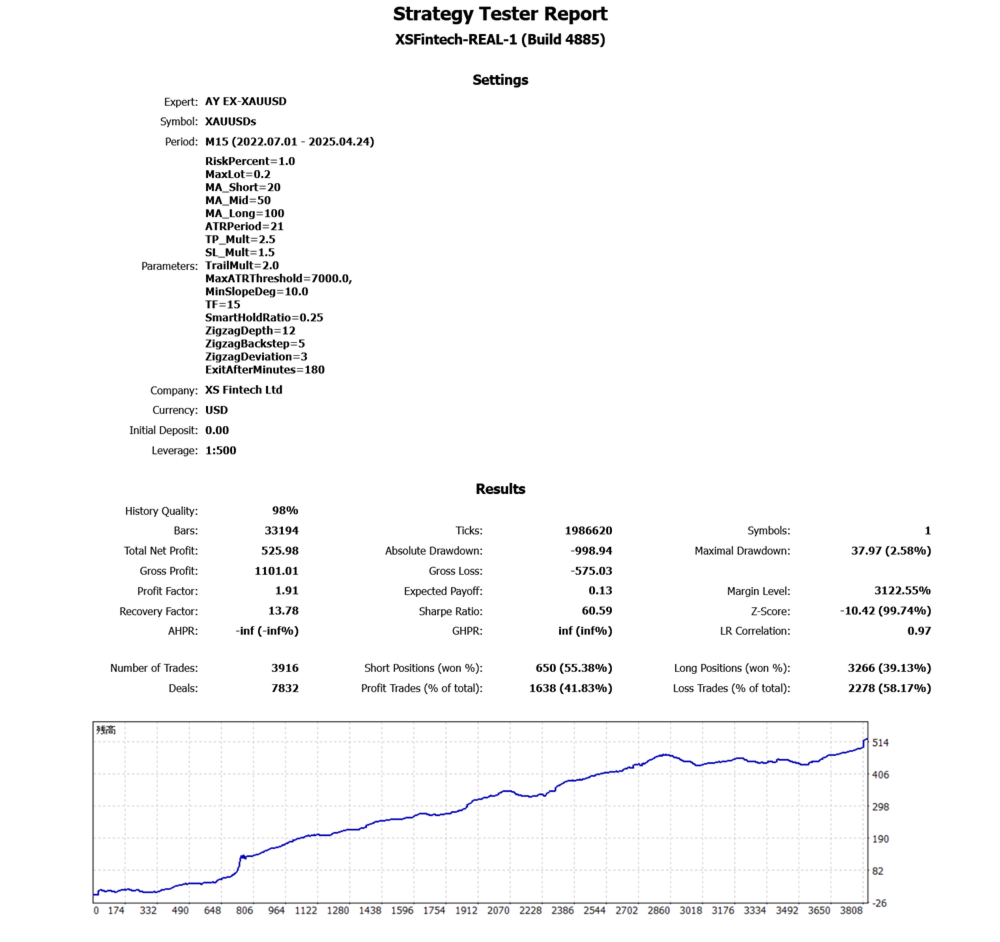 O “Ay XAUUSD Expert” é um EA de alta performance desenvolvido exclusivamente para ouro (XAUUSD) no timeframe M15.