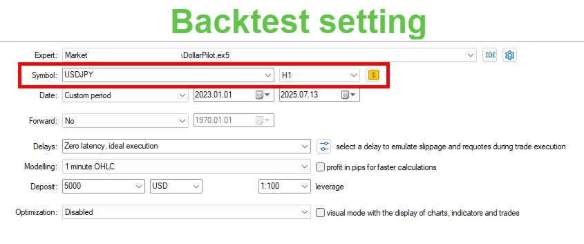 - Currency pair: Attach the EA to USDJPY chart