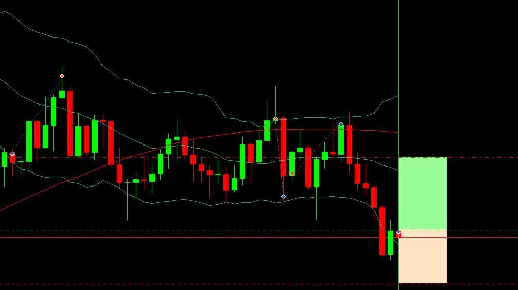 - The price breaks below the lower Bollinger Band, indicating a volatility excess often followed by a rebound, and/or