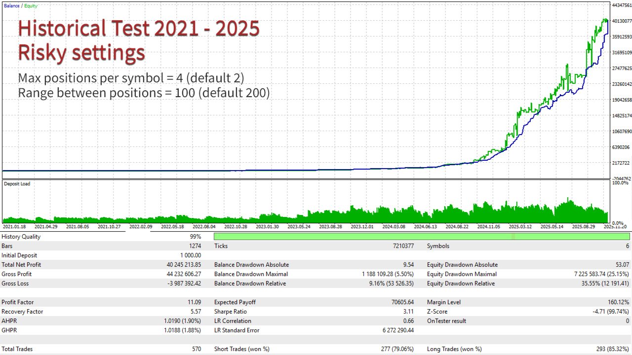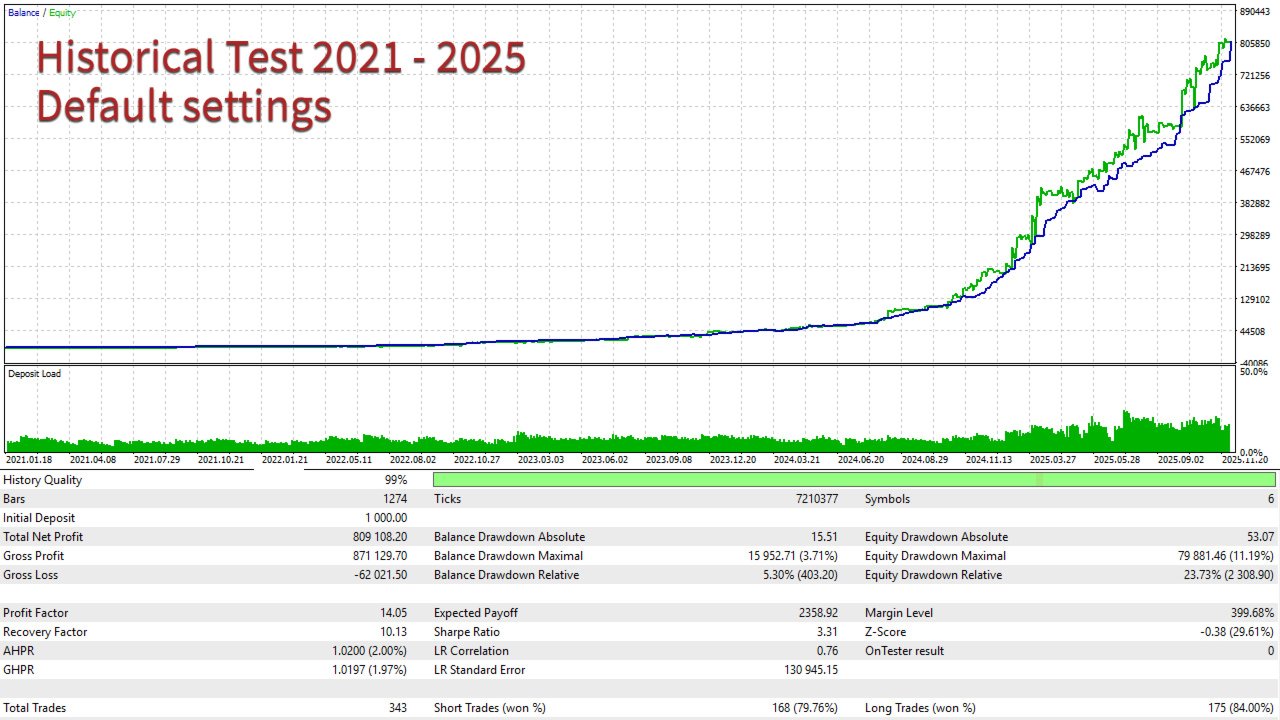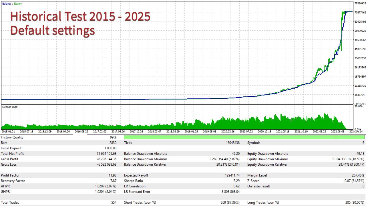 Multicurrency: The EA simultaneously monitors 6 major currency pairs, diversifying risks.