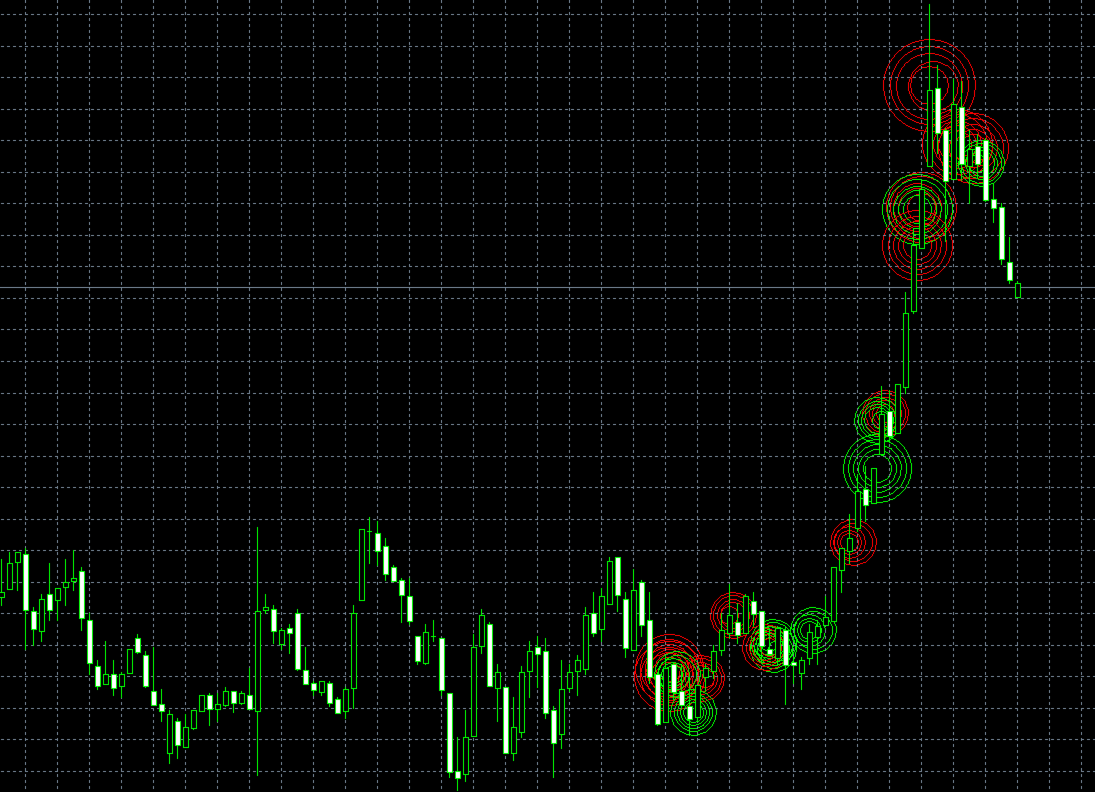 Uma ferramenta visual simples que exibe quadrados coloridos no gráfico quando o preço desacelera repentinamente acompanhado por um pico de volume.
