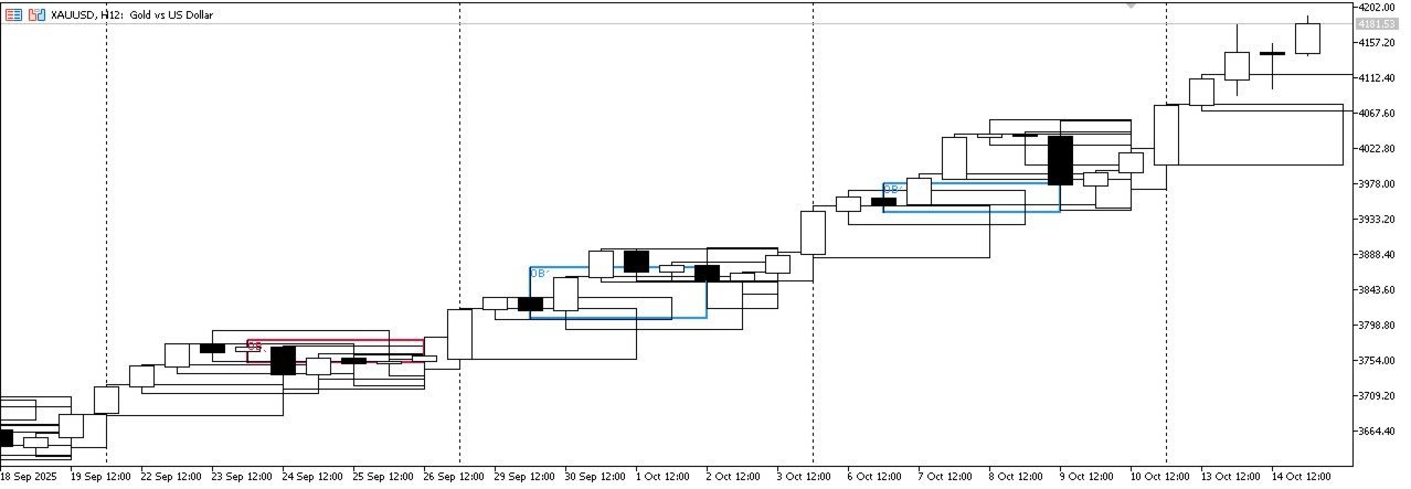 - Renderiza retângulos em todas as velas analisadas (até 500 barras), com projeção futura e deslocamentos.