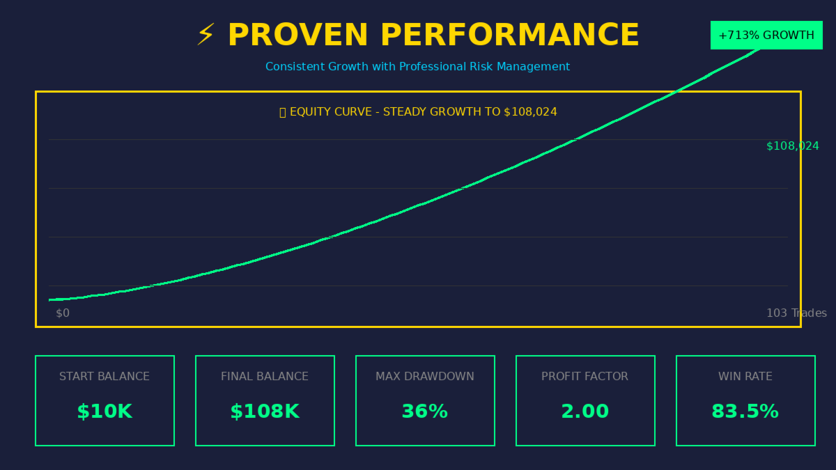 - Win Rate: Designed for 55-65% (quality over quantity)