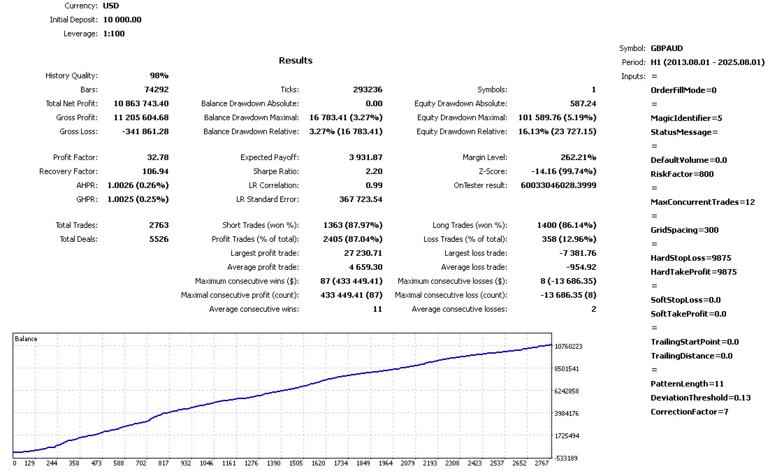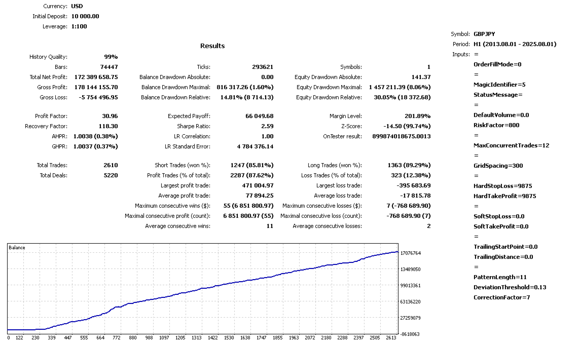 * **No Martingale**: Utilizes a non-geometric averaging system to prevent exponential lot increases and control drawdowns.