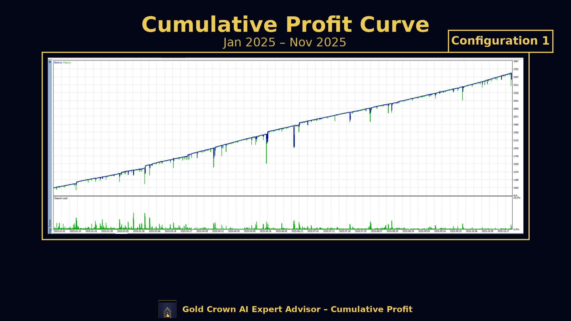 Configuration 1: Fixed 0.01 lot with the same margin risk and volatility parameters as the dynamic profile; designed for smoother equity curves.