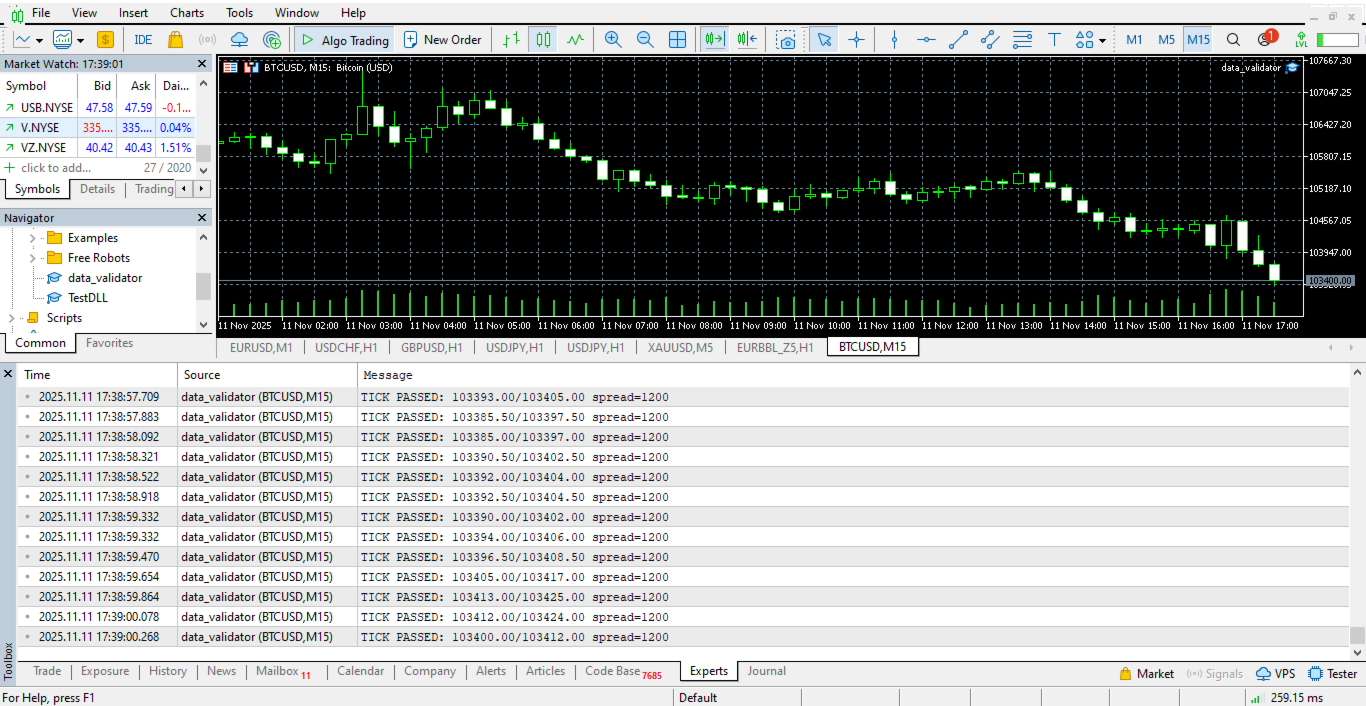 V-Connect Tick Data Validator is a utility for MetaTrader 5. It checks each tick and rejects invalid data.