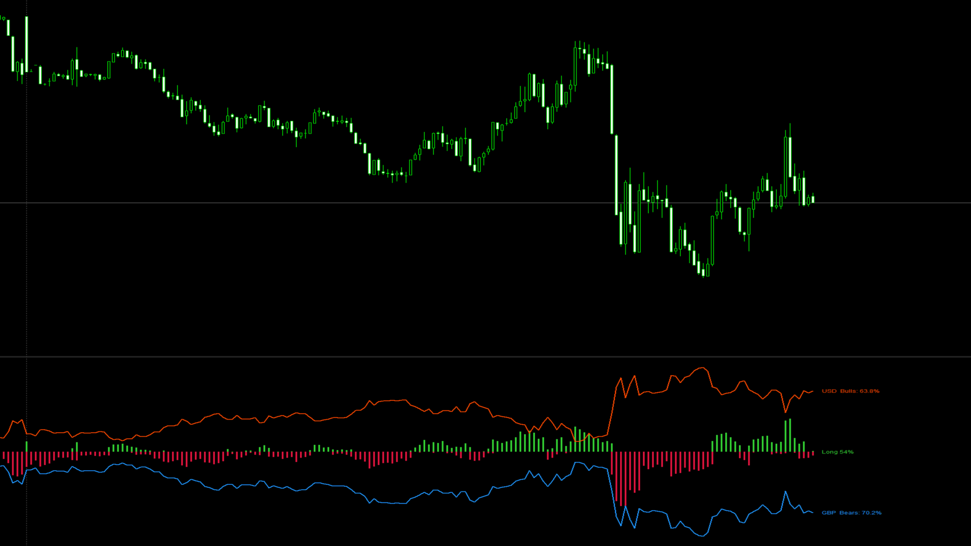 Rótulos de desempenho: Rótulos percentuais automáticos exibem as proporções de touros/ursos em tempo real e o sentimento geral do mercado.
