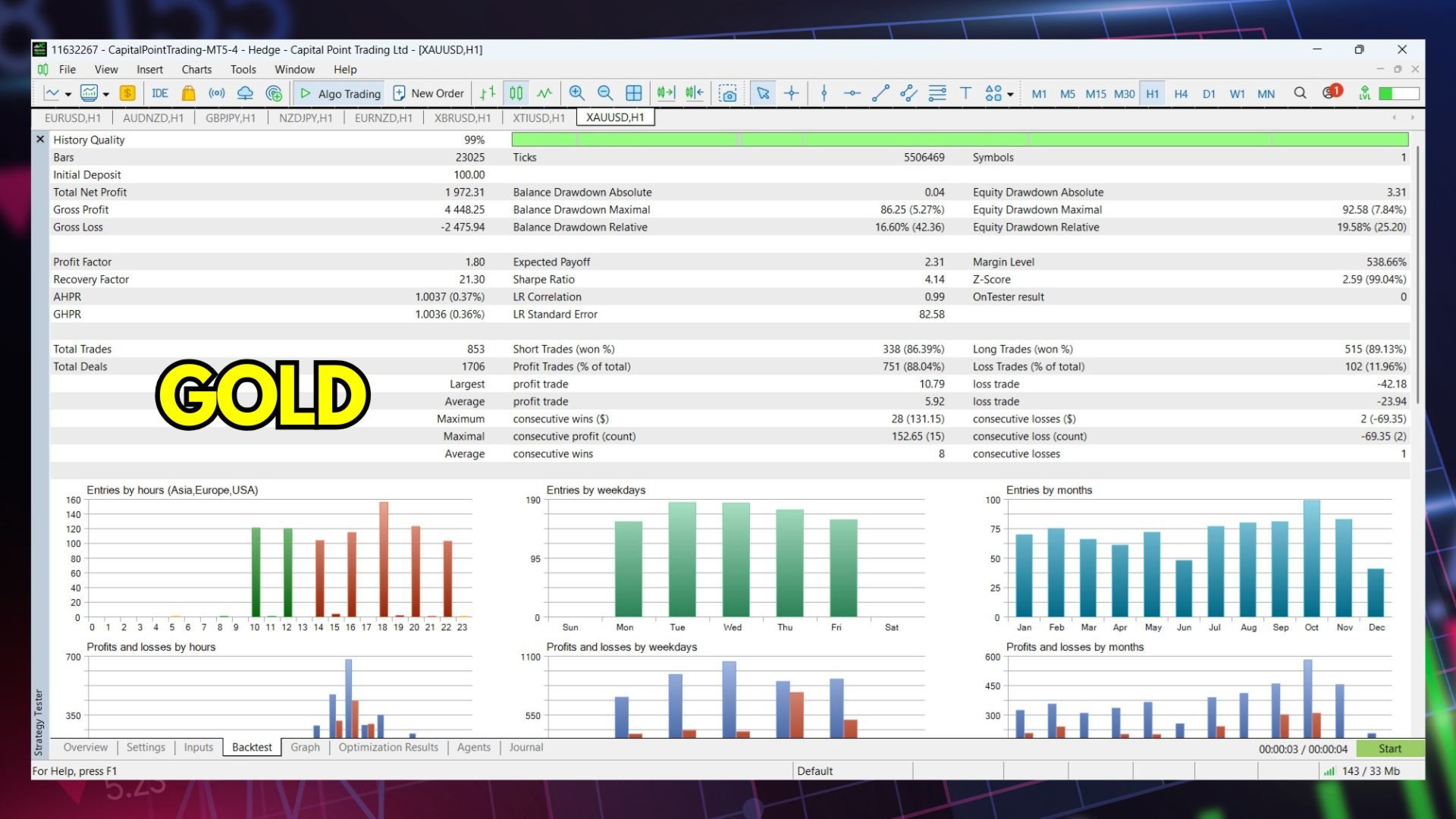 Trata-se de um poderoso Expert Advisor (EA) para aproveitar as melhores e maiores oportunidades no símbolo GOLD or EURUSD, em todas as fases da tendência, do início ao fim, no período de tempo H1 e na plataforma MT5.