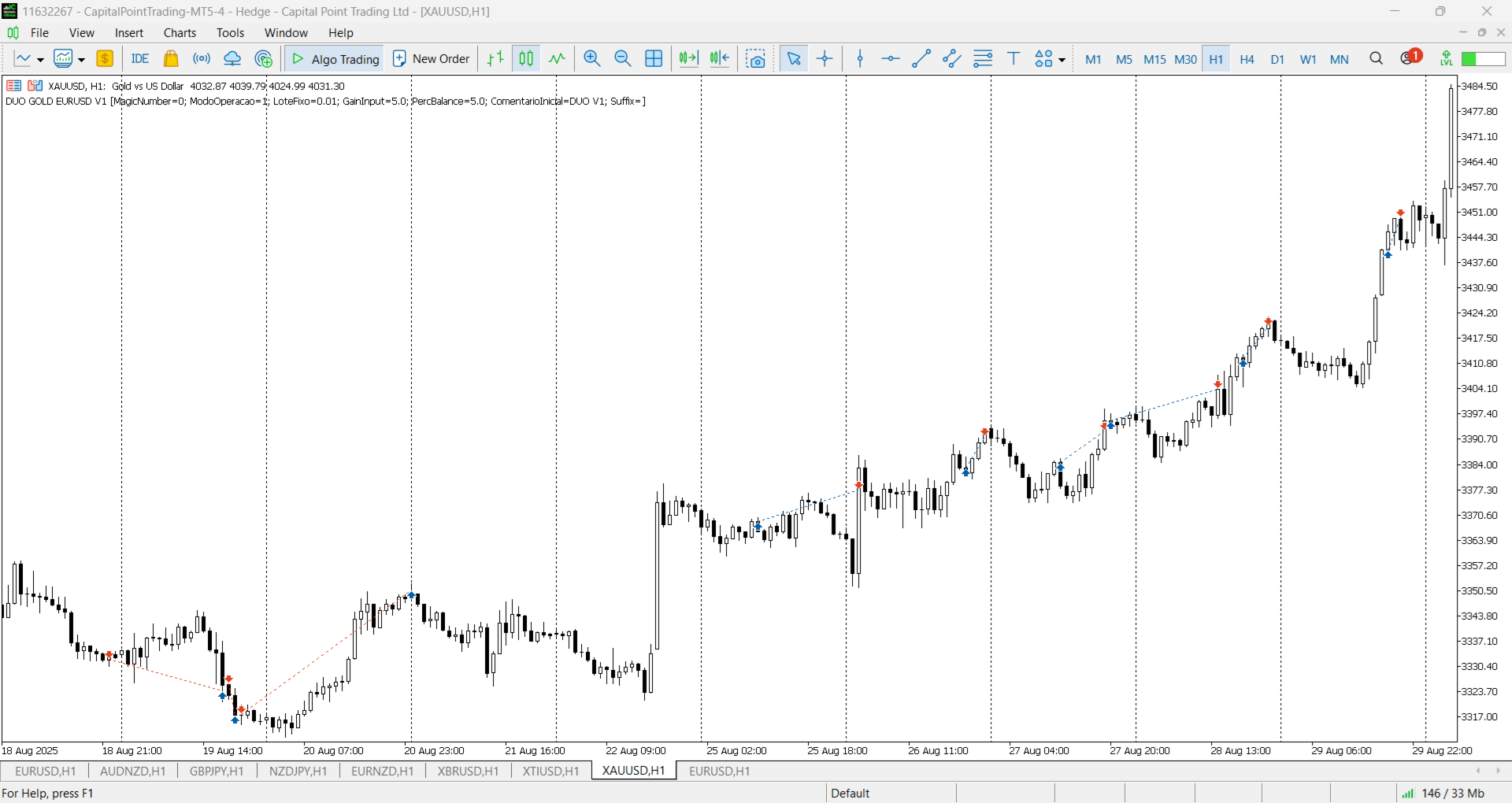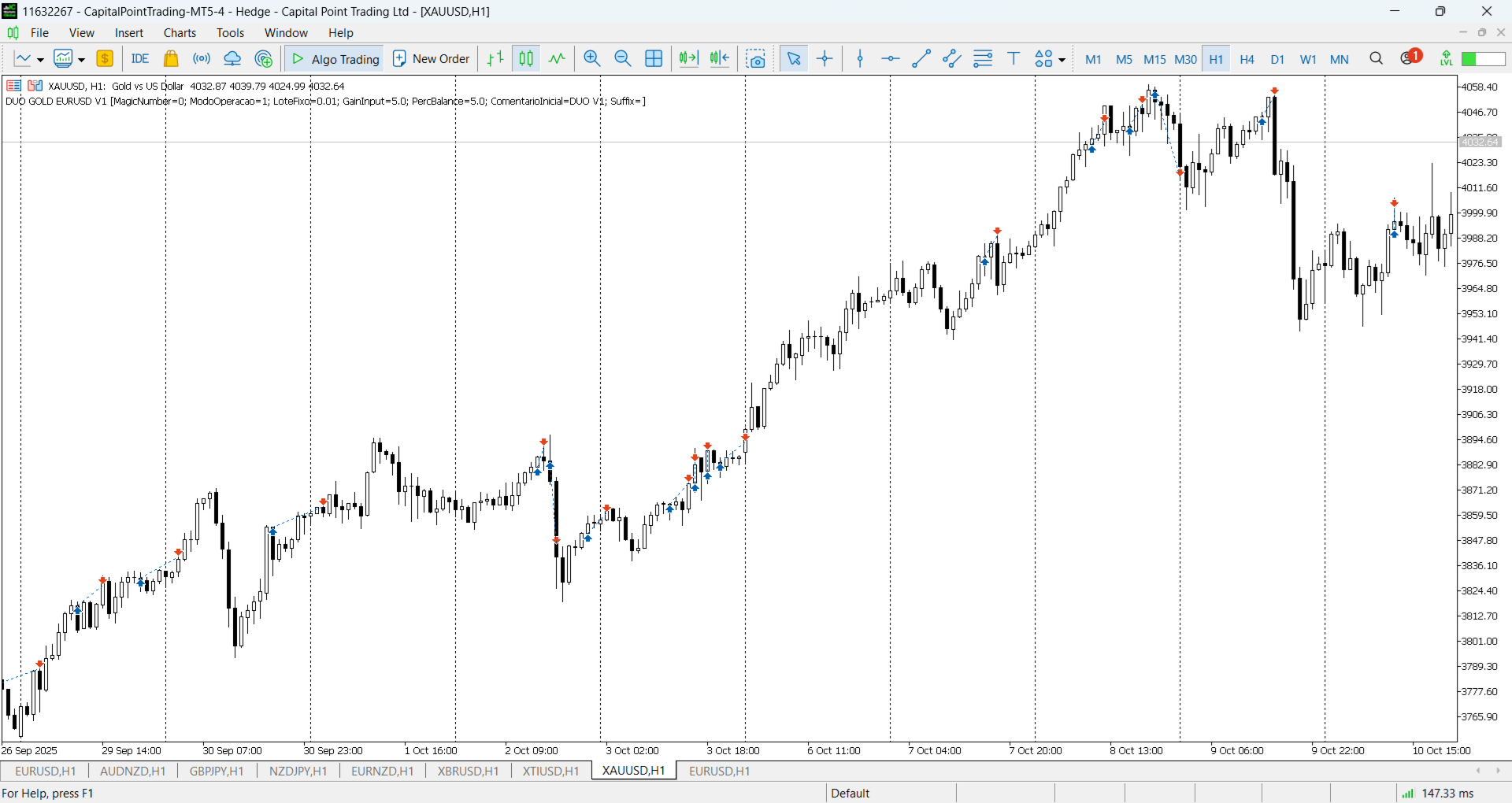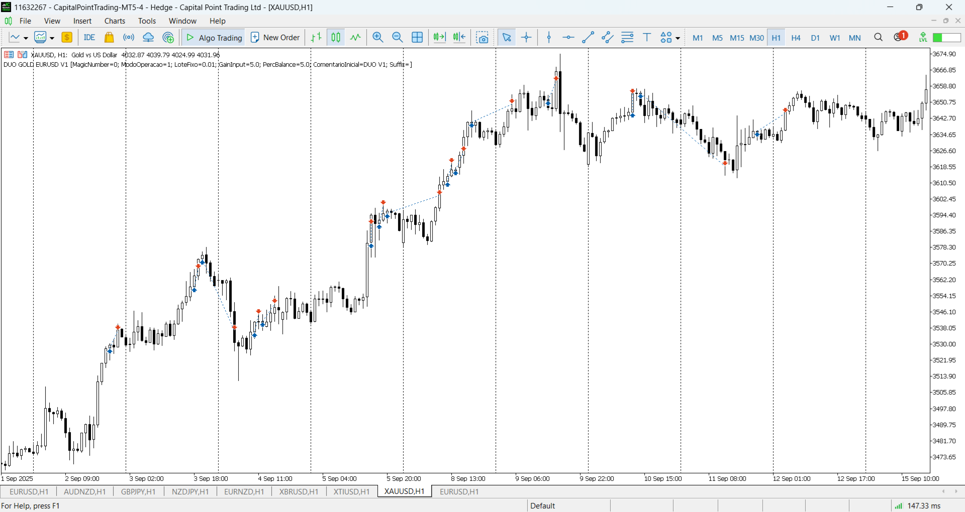 - Certifique-se de que todos os pares (GOLD or EURUSD) estejam no Market Watch (Ctrl+M),