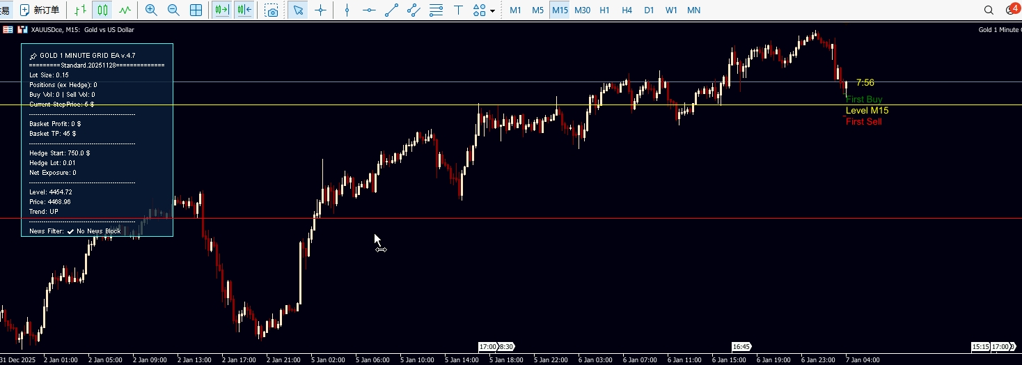 Hi! I just wonder why it doesn't trade at all despite it reached the Level M15, first buy area and first sell area...or maybe there's something wrong with my setup? Do I need to change in the input when attaching to the chart? I am positive that this EA is reliable based on the reviews of other users. I hope you can help me set-up mine. I bought it last week, attached it to my chart, waited that it would reach the level it says on the chart and have its first buy/sell, but didn't.