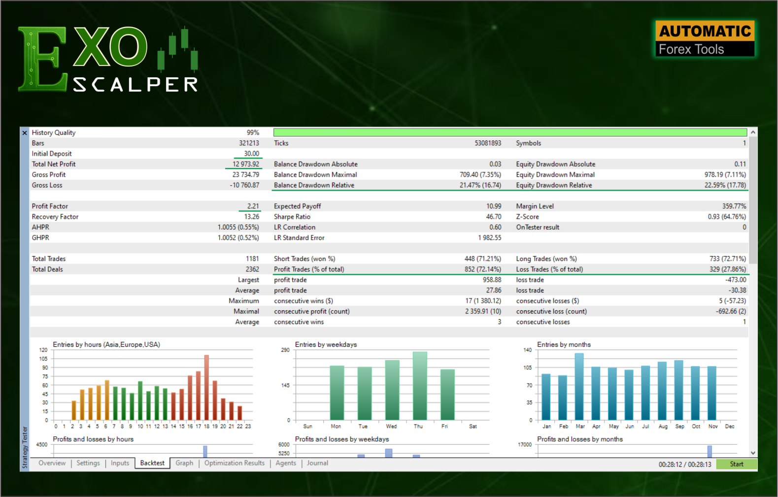 Introducing a simple and reliable automated trading tool, Exo Scalper is an Expert Advisor specifically designed for the XAUUSD currency pair.