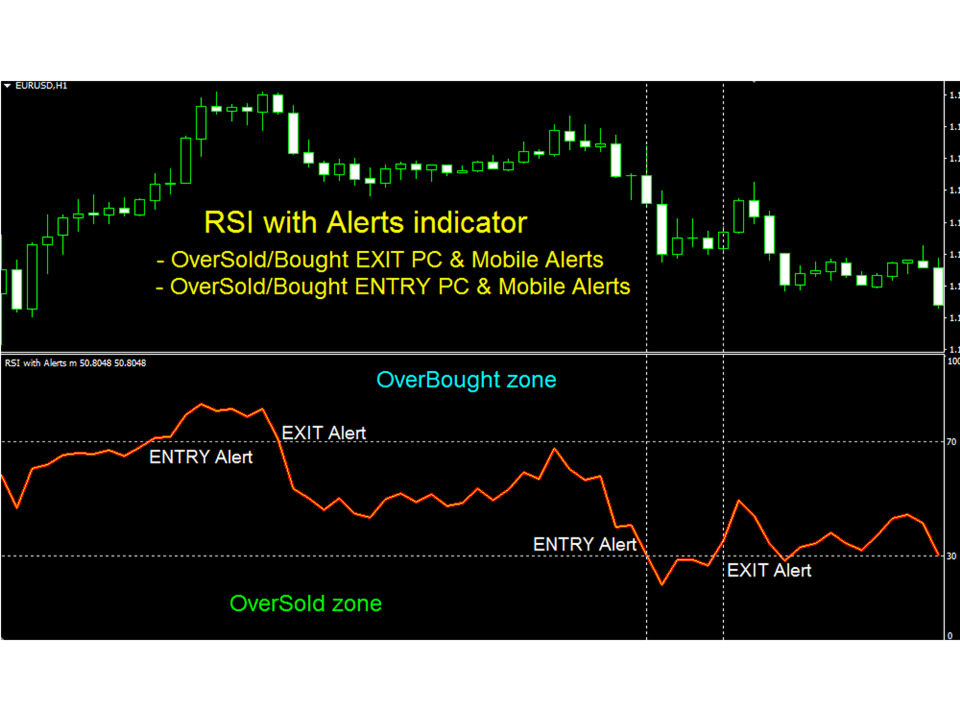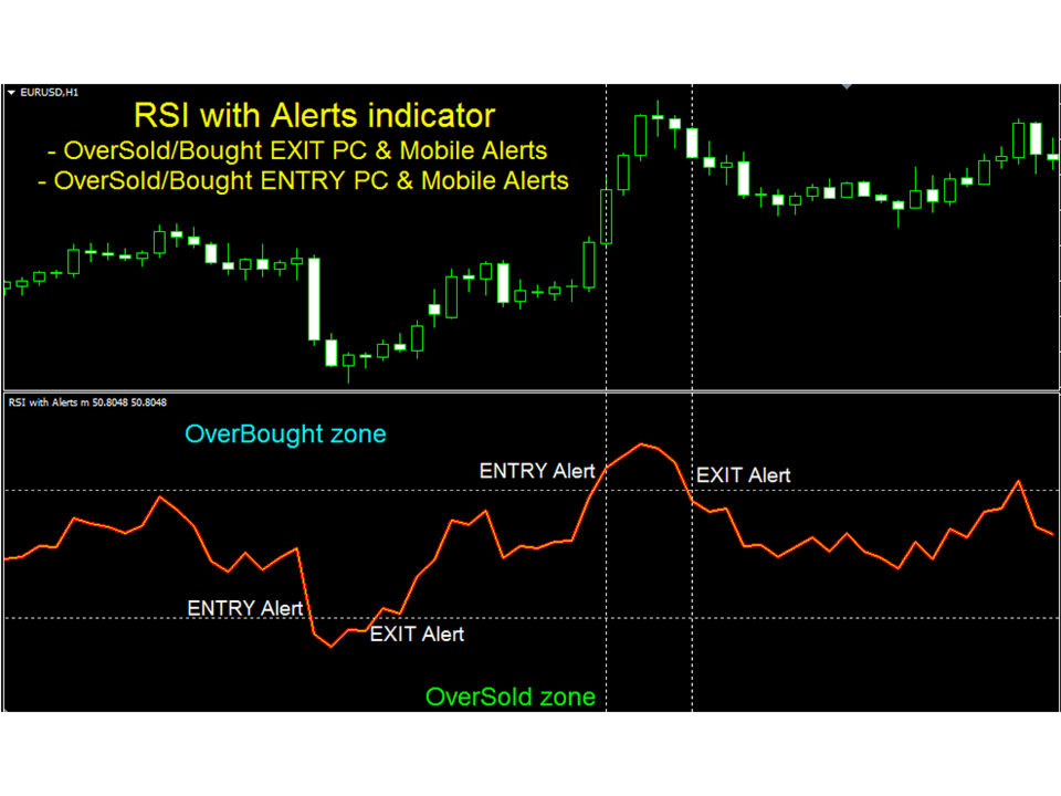 - Alertas integrados para PC e dispositivos móveis: Entrada na zona de Sobrevenda/Sobrecompra e Saída da zona de Sobrevenda/Sobrecompra.