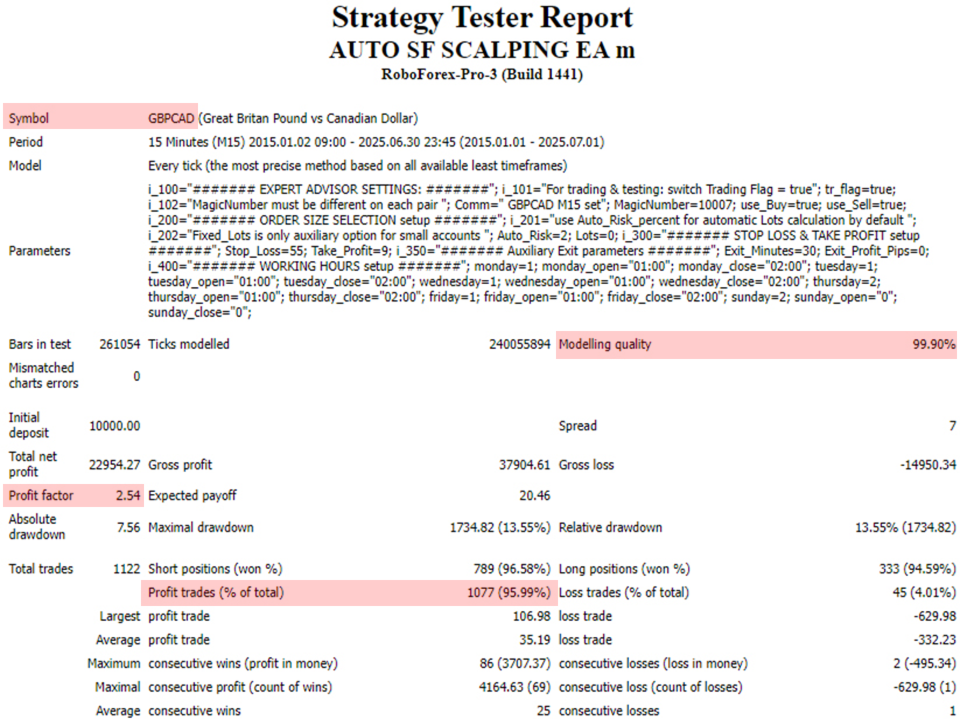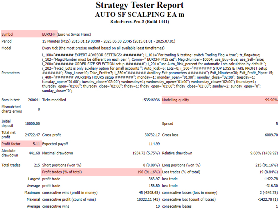 - Horário de operação: o EA busca sinais de entrada no início da sessão de negociação na Ásia.