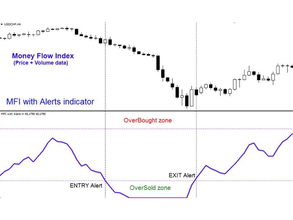 - O Índice de Fluxo de Dinheiro (MFI) é um oscilador técnico que utiliza dados de preço e volume para identificar zonas de sobrevenda e sobrecompra.