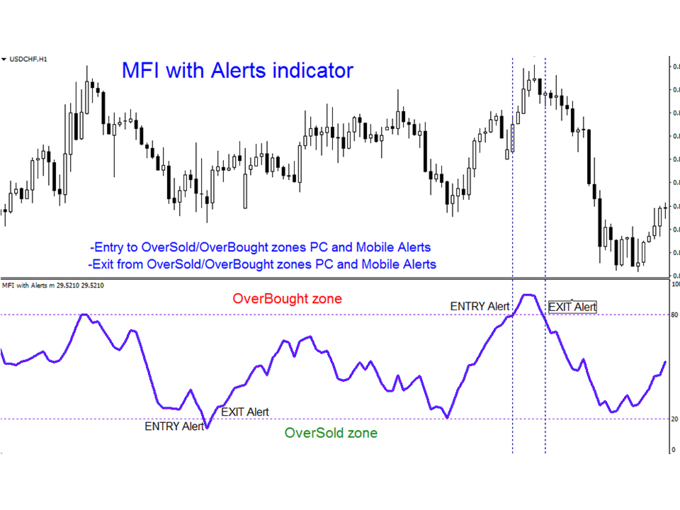 - É ótimo para entradas de Venda em Sobrecompra quando o MFI está acima de 80 e entradas de Compra em Sobrevenda quando está abaixo de 20.