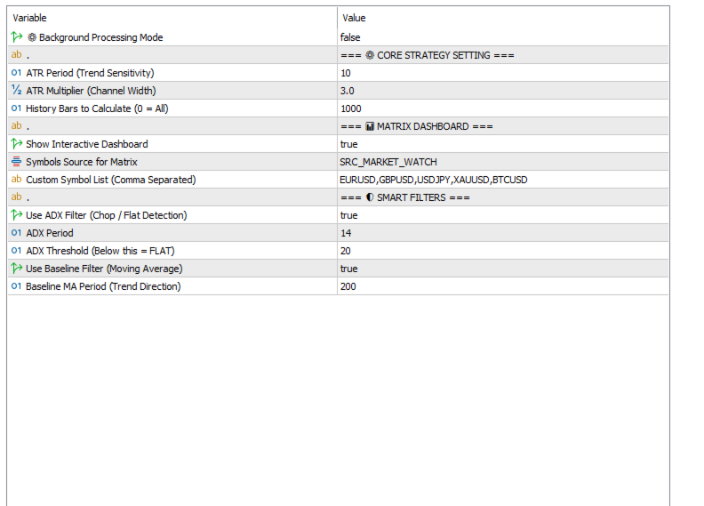 ATR Period: Sensitivity of the trend calculation. Lower values = faster signals (Scalping). Higher values = longer trends (Swing).