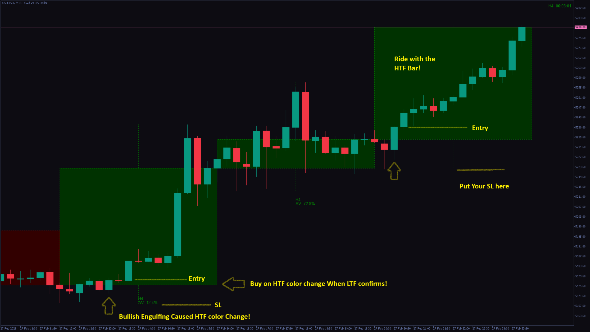 TF3: “Fill TF3 Bars” = ON, “Show Info/Data” = ON, “Draw FVGs” = ON