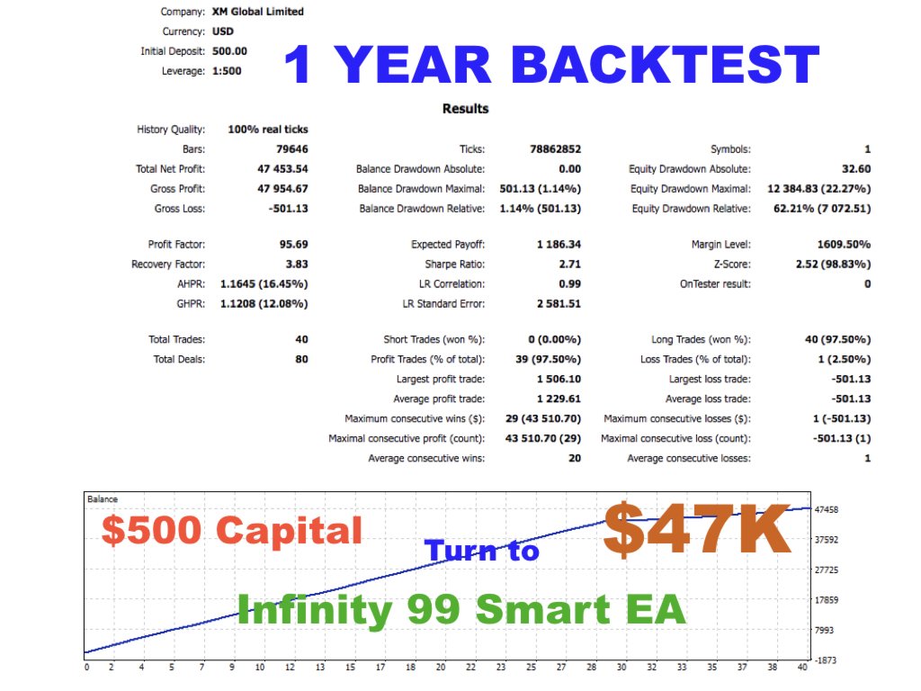 Infinity 99 Smart EA is a fully automated trading system designed for forex traders seeking consistent performance with intelligent drawdown recovery. Built with advanced algorithms, it executes trades with precision, manages risk smartly, and maximizes profit potential.