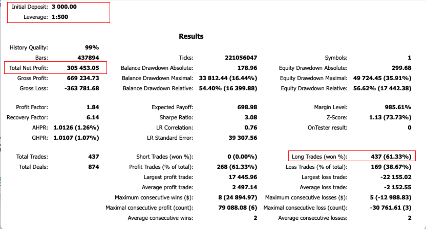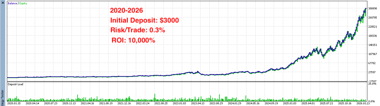 Backtesting results should be interpreted carefully. Always validate performance across multiple market conditions before deploying on a live account.