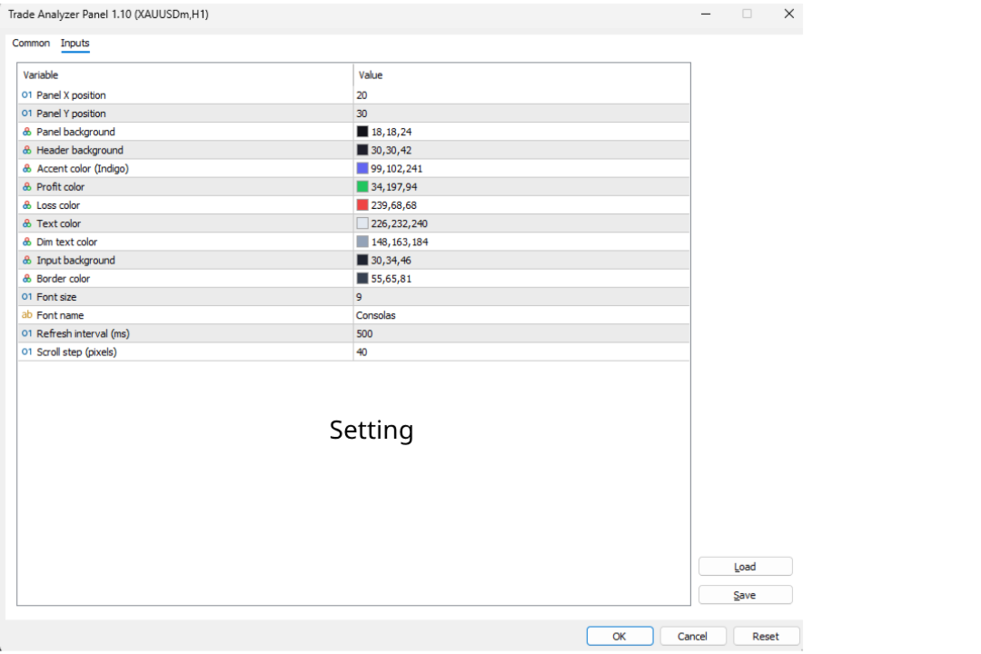 | InpRefreshMs | 500 | Data refresh interval in milliseconds |