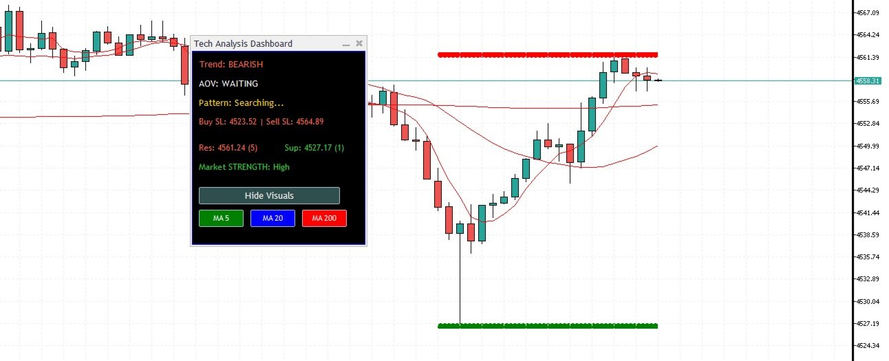 Dynamic MA Toggles: Instantly show or hide the 5, 20, and 200 SMAs. Use them for entry signals and then hide them to clear your view.