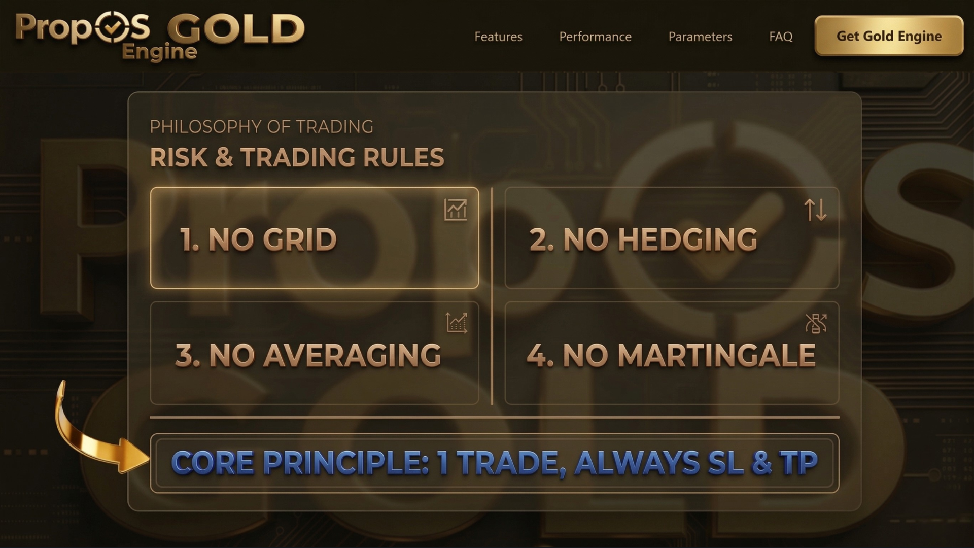 O PropOS Gold Engine foi projetado para ser paciente, esperar as condições certas e executar com precisão quando a oportunidade aparece.