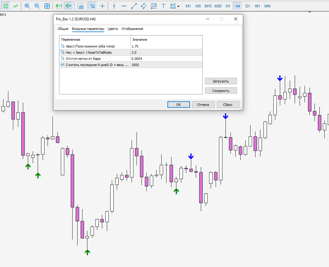 Conclusion: "Pin Bars" indicator is a convenient and easy–to-use tool for identifying pin bars on charts. It can be a useful addition to your trading strategy, helping to identify potential trend reversals and improving trading results.