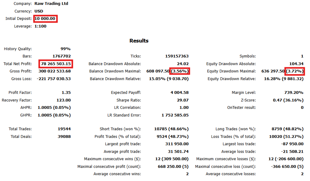 !! Você deve usar uma corretora ECN. Há uma proteção de spread máximo (Max Spread (Points)) nas configurações. Não use plataformas lixo; se usar, não conseguirá abrir ordens e, se abrir, o spread e a derrapagem (slippage) reduzirão seus lucros, e você voltará para perguntar por que a estratégia não dá dinheiro. Não é que você ganha pouco, criança boba, é que seus lucros estão sendo devorados por corretoras gananciosas.