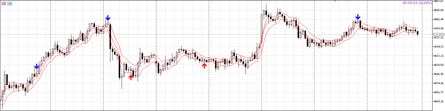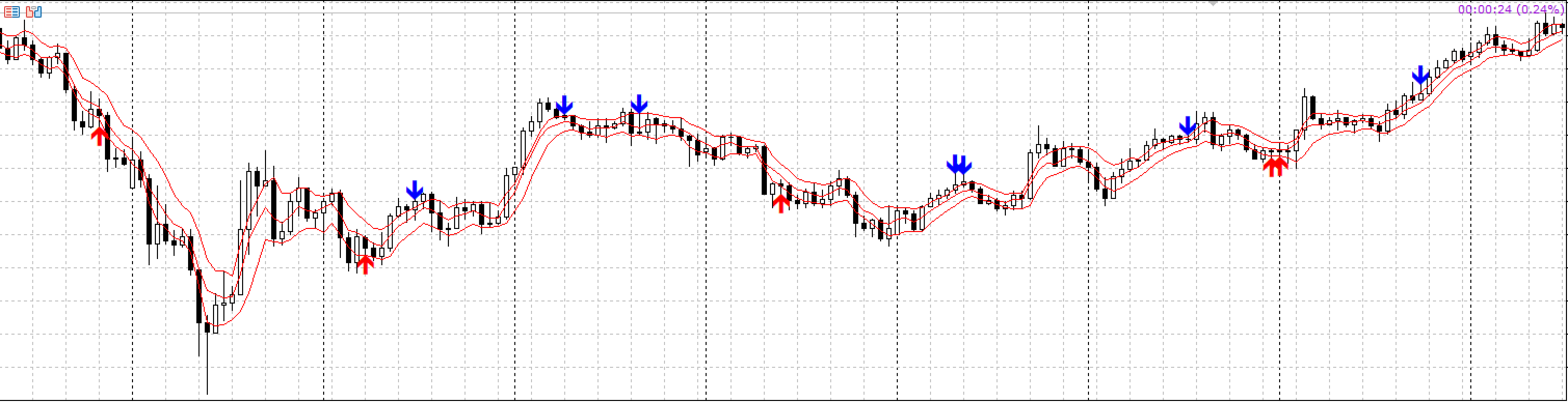 This indicator focuses on capturing upward market movements. When a long signal is detected, a red upward arrow appears on the chart, indicating a potential long entry opportunity.