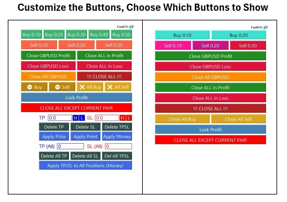 - Trading involves significant risk. FastBTN is a utility tool, not a standalone trading strategy. It does not provide trading signals, investment advice, or guarantees of profit. Always test the EA on a demo account before moving to a live environment.