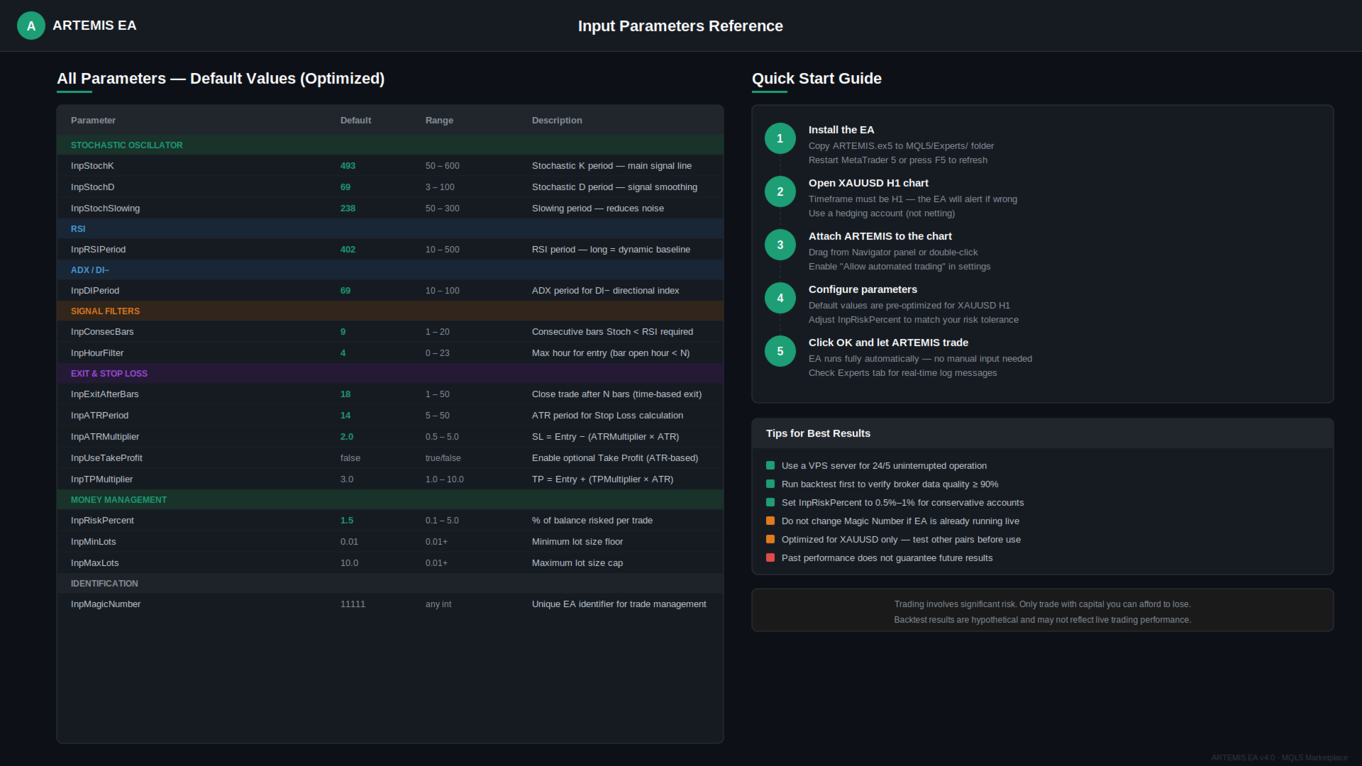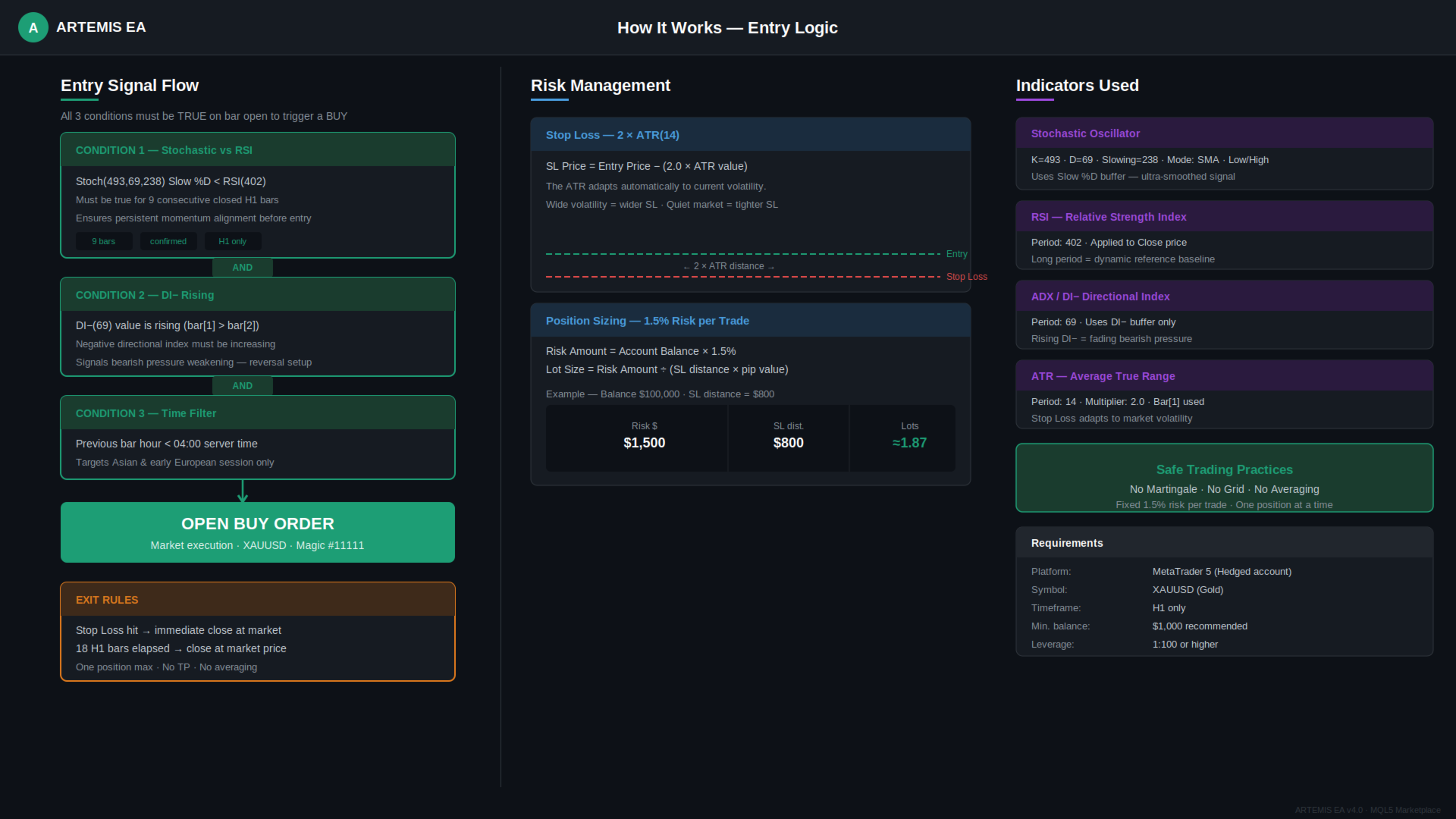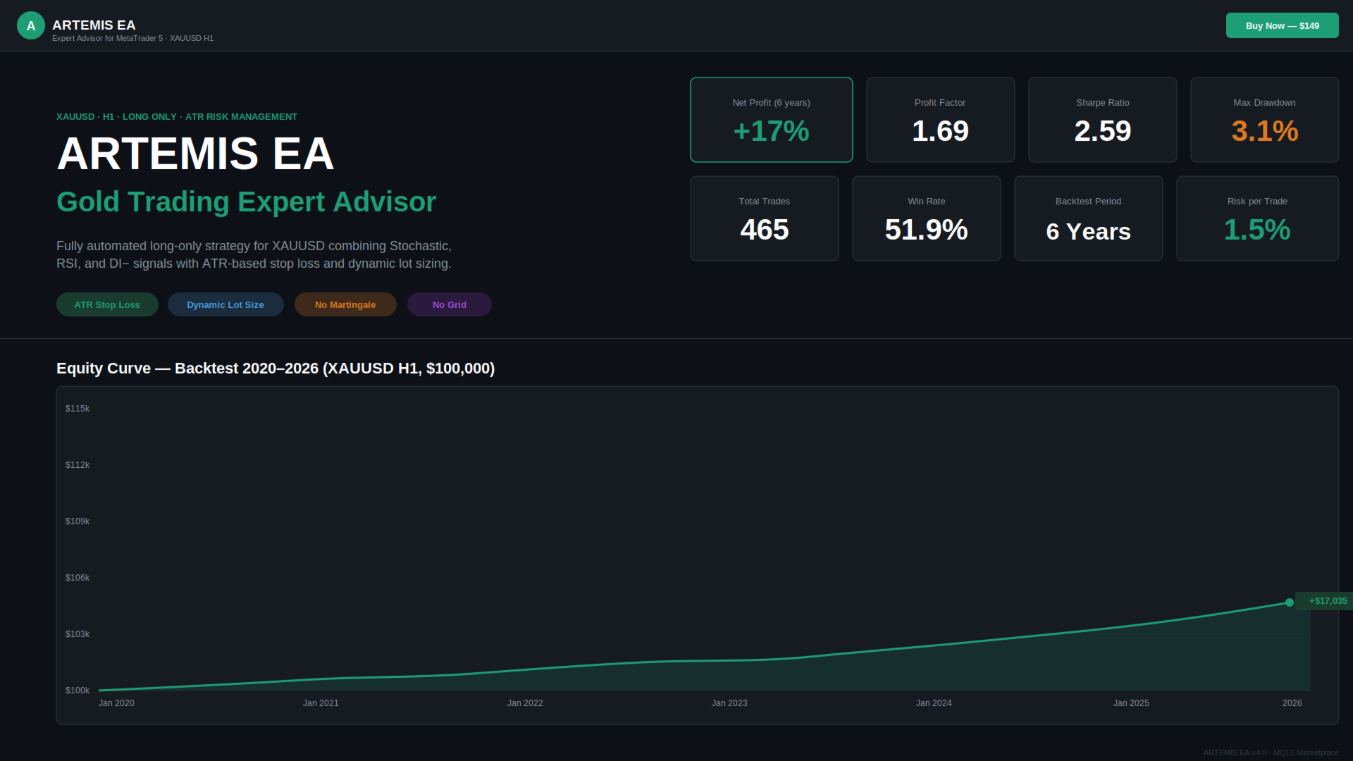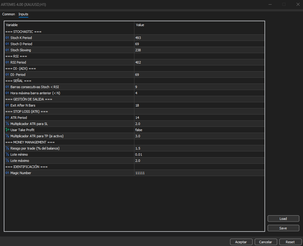 The ARTEMIS EA is designed to trade long-only (buy positions only) on XAUUSD using the H1 timeframe.