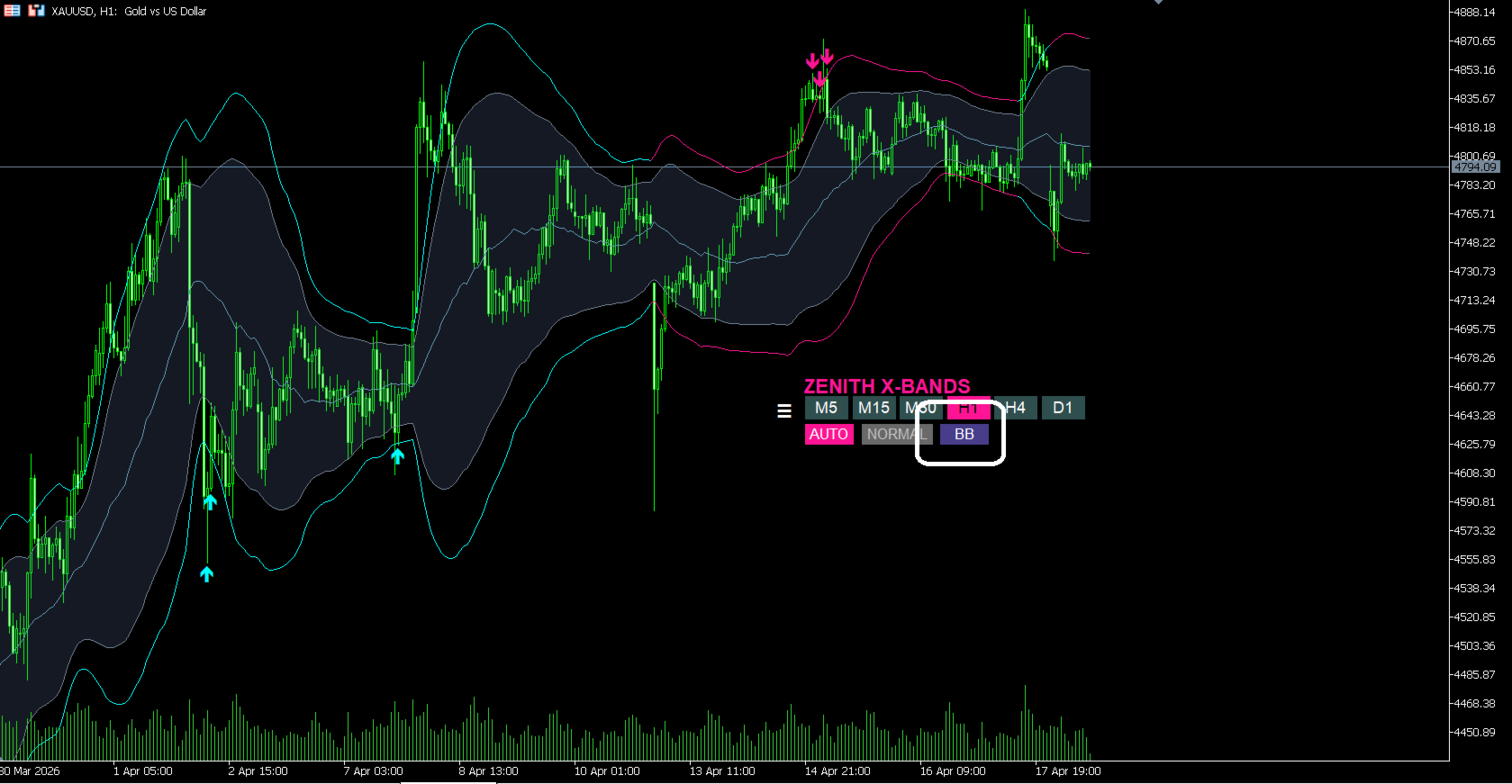 TMA / BB 1-Click Toggle: Instantly switch between two powerful logics directly on the chart.