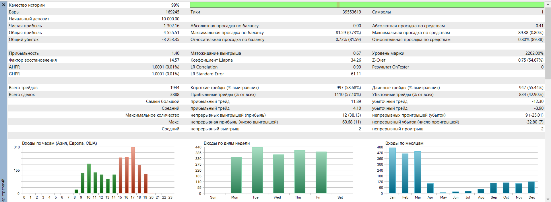 The EA focuses on short-term price deviations and opens trades expecting price to return to its local equilibrium.