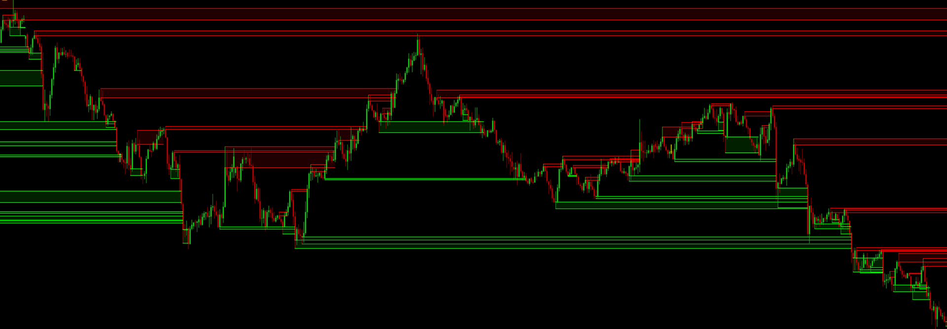 - Dynamic Zone Pruning: The indicator monitors price action. When a zone is crossed by a closing price (a candle body closes through it), the indicator stops extending the zone to keep the chart relevant to current market conditions.