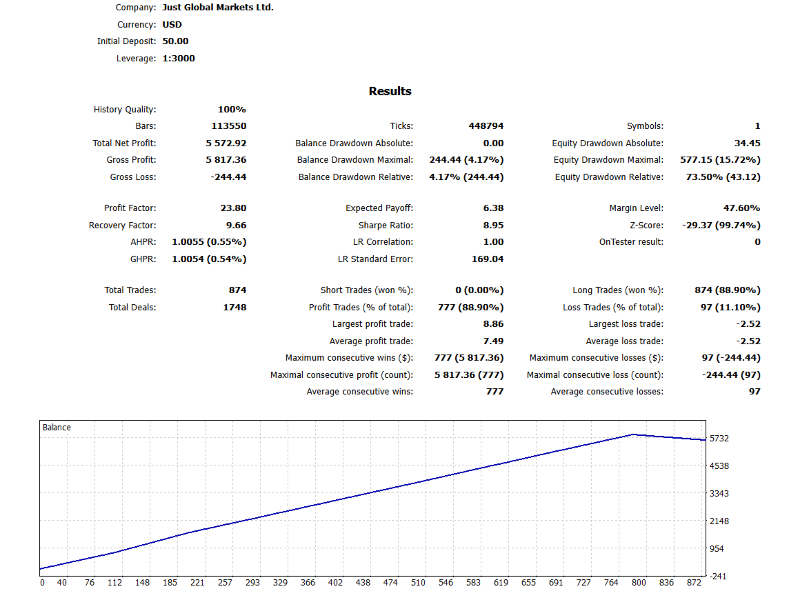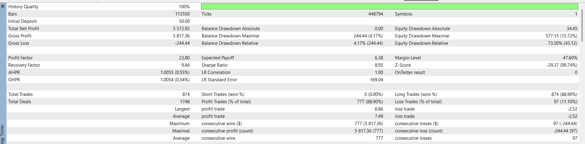 These results are based on historical data and are provided for informational purposes only. Actual performance may vary depending on market conditions, broker execution, and trading environment.