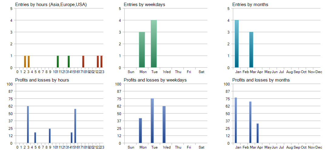 Win Rate: 75%. It won 6 out of 8 trades in this specific test run.
