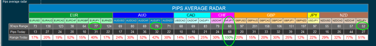Check JPY with other low 3 Days range currency