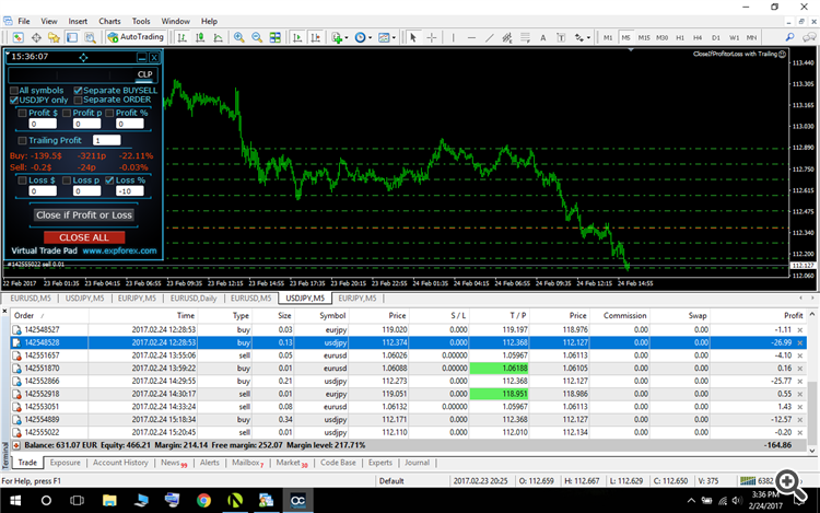 При попытке закрыть сделки моего советника и закрыть терминал по прибыли-убытку в долларах происходит следующее :
