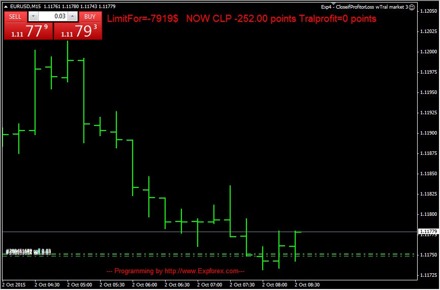 Советник полностью заменен на панель управления CLPОпция работает для всех типов закрытия: Все символы, Текущий символ, Отдельное направление BUY и SELL , Каждый ордер отдельно.