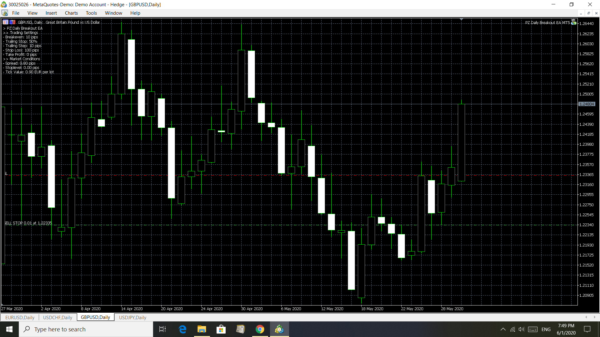 Instead of placing bidirectional pending orders using the last day's trading range the EA moves back one candle too far.