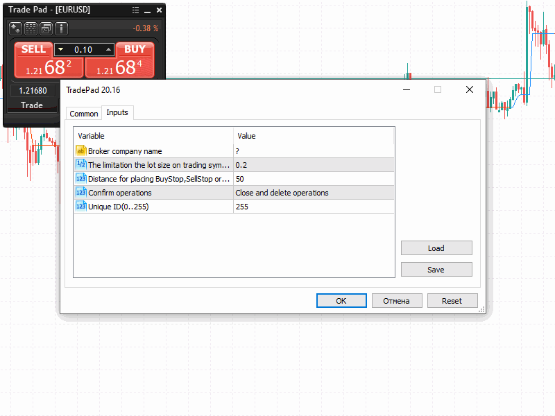 To receive trading signals in MultiCharts mode, to automatically place pending orders, you need to configure it: