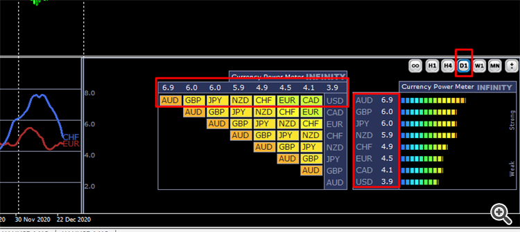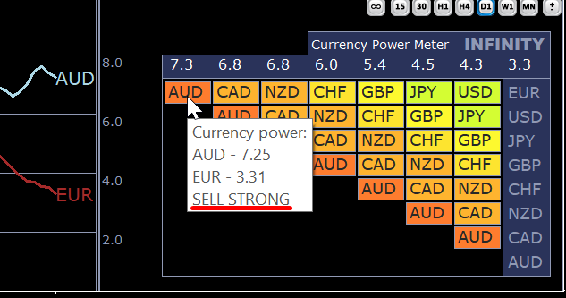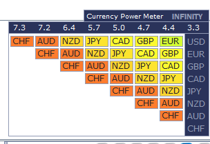 Hello. As you can see in the Power meter of currency panel (on the right) all currencies are ranked from the strongest to the weakest. Similarly, in the cross-rate Power meter panel (on the left), you can see the same values