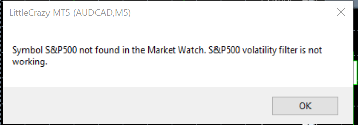 This means your broker does not have an S&P500 symbol. This means that the additional stock market volatility filter does not work for you. But otherwise EA works correctly.