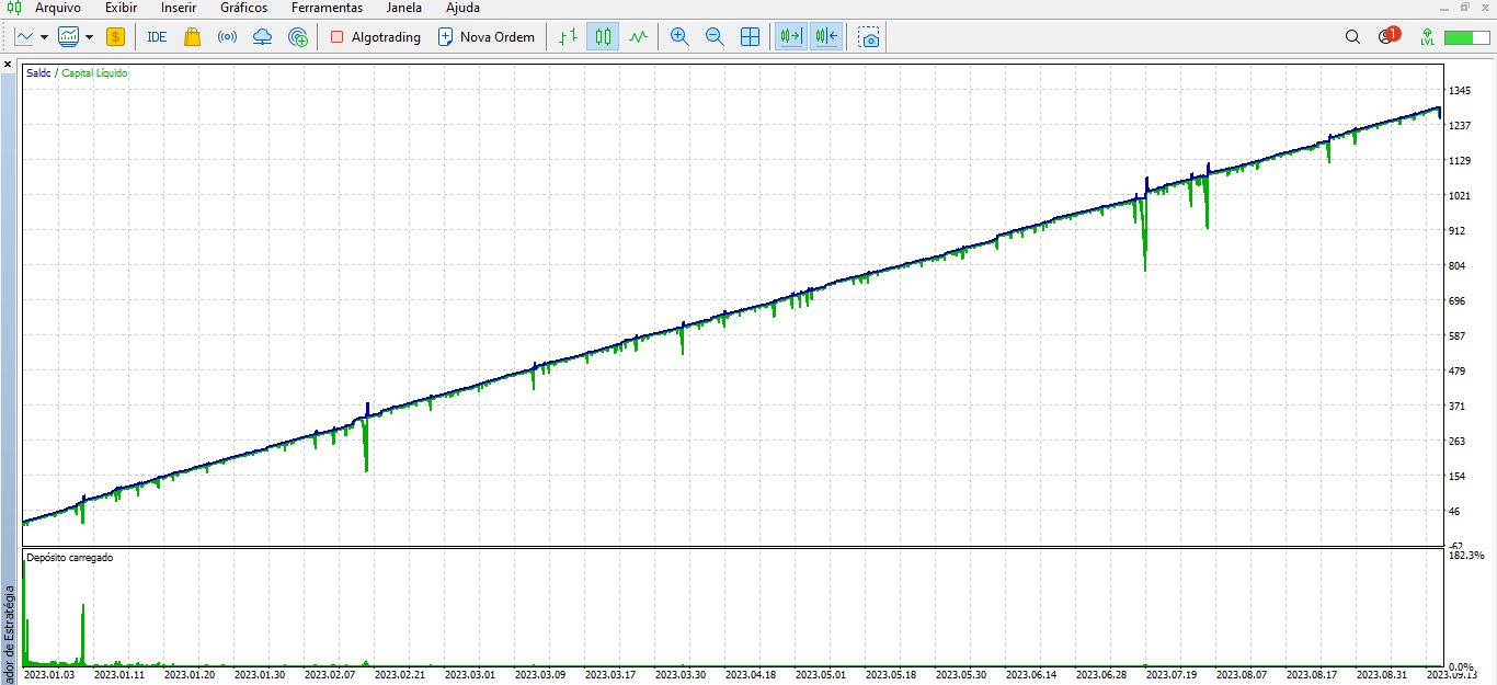 Diante mao ja segue um dos backtest que realizei no AW THREE durante a semana do dia 02-01-2023 a 13-09-2023 a 0.01 sem matingale.